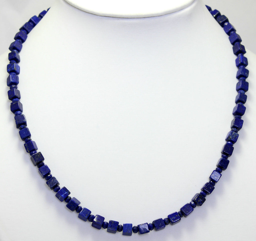 Lapis Kette Edelsteinlkette Quader Lapis- Lazuli Marineblau halskette ca.45 cm
